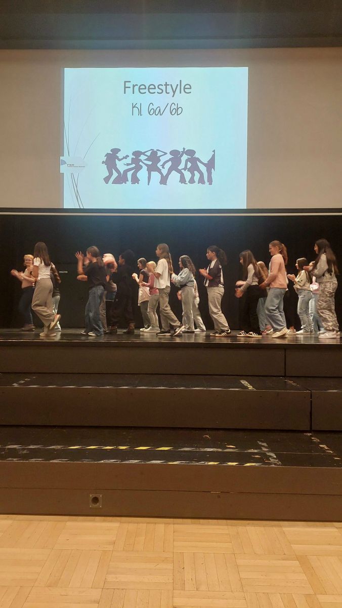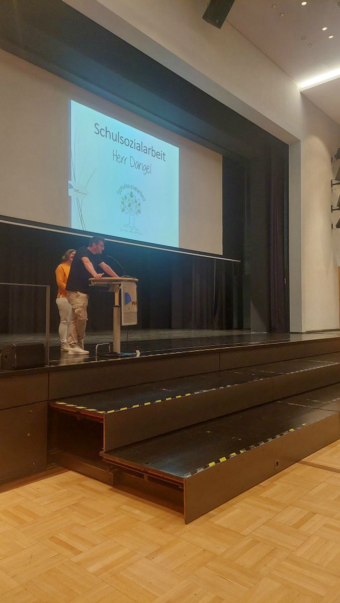 Im Anschluss daran zeigten die Sechser einen Linedance, einstudiert von Jean Pierre Brucker. Die beiden Schulsozialarbeiter Regina Wahl und Johannes Dangel begrüßten die 70 neuen Fünfer mit herzlichen Worten und stellten kurz die Schulsozialarbeit an der FSR vor.