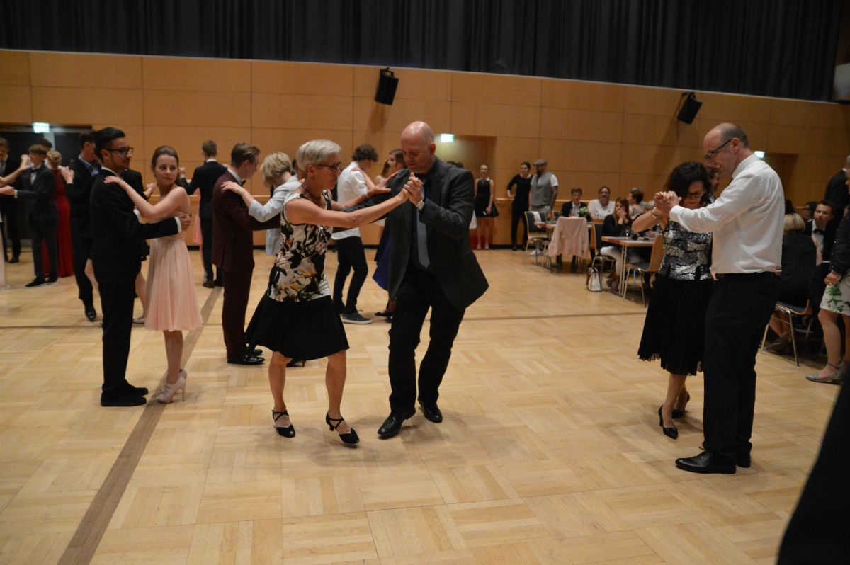 Auch für Eltern und Lehrer gab es im Voraus die Möglichkeit, an zwei Übungsabenden ihre tänzerischen Fähigkeiten aufzufrischen. Krönender Abschluss des Tanzunterrichts war dieser Tanzball mit Eltern, Lehrern und Freunden. Besondere Programmpunkte an diesem Abend: zwei Line-Dance-Vorführung der 10er, sowie beeindruckende Shows vierer Hip-Hop-Formationen aus der Vaihinger Tanzschule DLC.