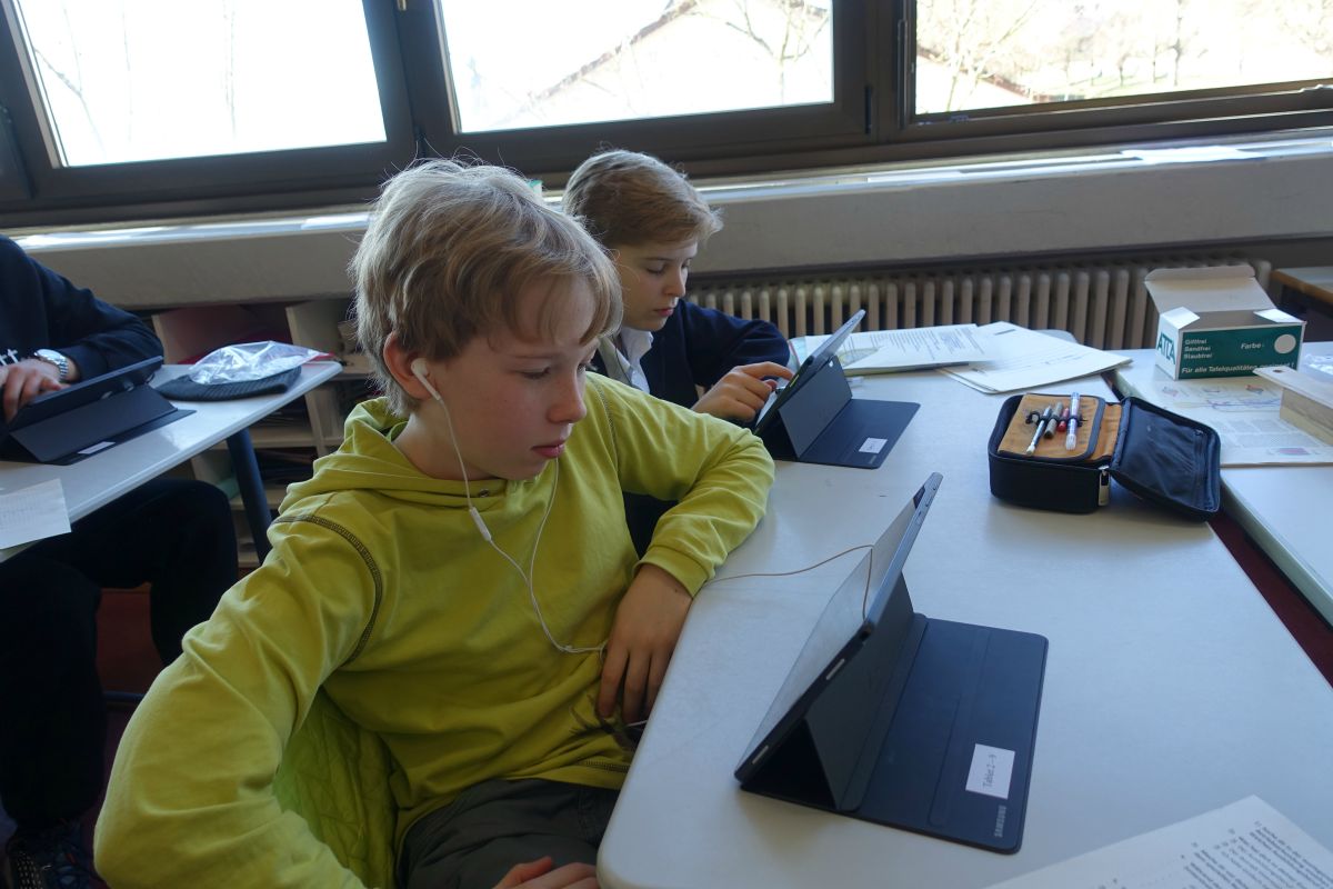 So informierten sie sich im Laufe des Schulvormittags nicht nur mit Tablets über verschiedene Berufsfelder, sondern es kamen auch VR-Brillen und Filme in 360-Grad-Panorama-Optik zum Einsatz, mit denen virtuelle Ausflüge in unbekannte Ausbildungswelten gemacht werden konnten. Die Schülerinnen und Schüler schauten dabei sozusagen den Auszubildenden über die Schulter und erfuhren in kurzen Videos wie es zum Beispiel ist, einen Tag lang Hotelfachmann/frau im Marriot Hotel Berlin zu sein.