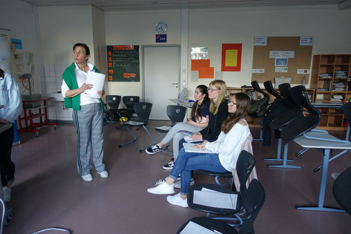 Des Weiteren informierte Beate Jacobsen, Leiterin der Projektgruppe „Übergang Schule-Beruf“ im Bildungsbüro des Landkreises Ludwigsburg, alle Schülerinnen und Schüler der 8. Klassenstufe über die Nutzungsmöglichkeiten der Internetplattform „Wegweiser Beruf“, die eine wertvolle Unterstützung bei der Berufsfindung darstellt.