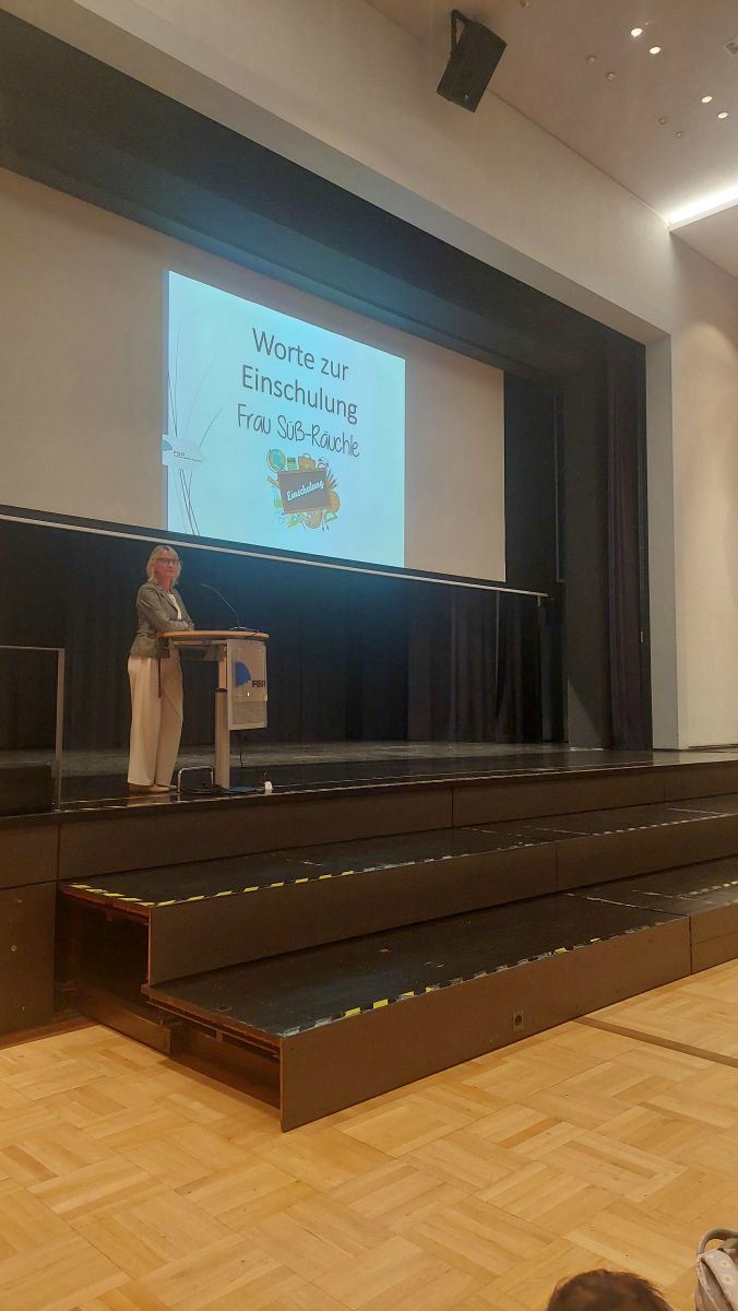 Die kommissarische Schulleiterin Claudia Süß-Räuchle forderte in ihrer Ansprache die Schüler auf, immer neugierig zu bleiben und Fragen zu stellen nach dem Motto: Wieso, weshalb, warum? Wer nicht fragt, bleibt dumm. Sie sprach die Fülle der Veränderungen an, die nun auf die Fünftklässler warten, versprach aber die tatkräftige Unterstützung der FSR bei der Umsetzung. Daneben ermutigte sie die Fünftklässler auch die inoffiziellen und informellen Seiten des Schulalltags wie neue Freunde oder gemeinsame Pausen auf dem Schulhof, Ausflüge, Projekttage und Schulfeste gemeinsam zu entdecken und zu genießen.
