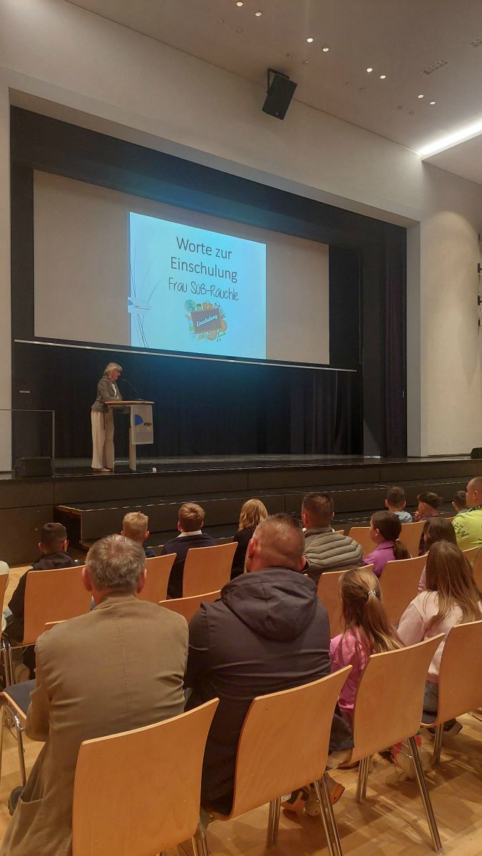 Während die frischgebackenen Klassen 5a, 5b und 5c ihr Klassenzimmer betraten, um sich dort schon mal ein bisschen kennenzulernen, hielten die Schulleitung Claudia Süß-Räuchle und der Fördervereinsvorsitzende Christian Felcmann weitere interessante Informationen für die Eltern bereit. Die Fünfer erhielten die Zugangsinfos für den elektronischen Stundenplan, Informationen zu den Klassenchats und teilweise auch die Bücher. Am Ende der Einschulungsfeier konnten sich die Eltern bei einer Bewirtung stärken, bis die neuen Fünfer ihren ersten Unterricht beendet hatten.