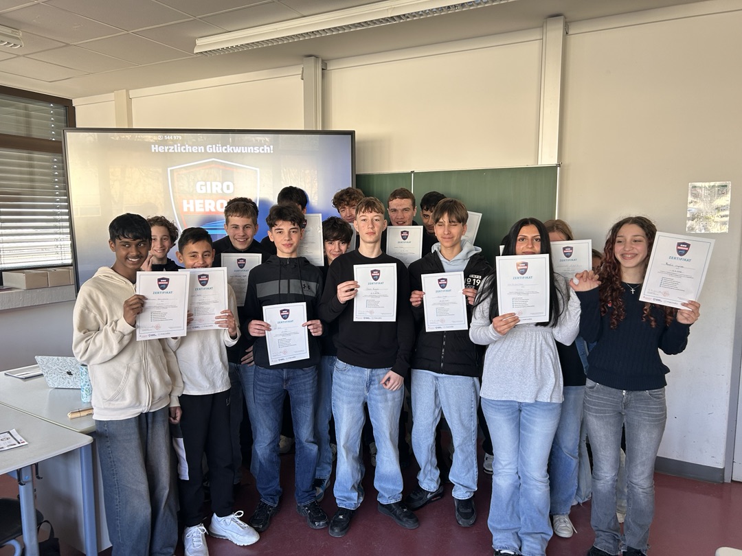 Am Ende des Seminars konnten sich alle Teilnehmerinnen und Teilnehmer über ein Zertifikat freuen. Stolz nahmen die Jugendlichen ihre Teilnahmebestätigung entgegen – und durften sich am Ende mit gutem Grund als „GiroHeroes“ bezeichnen.